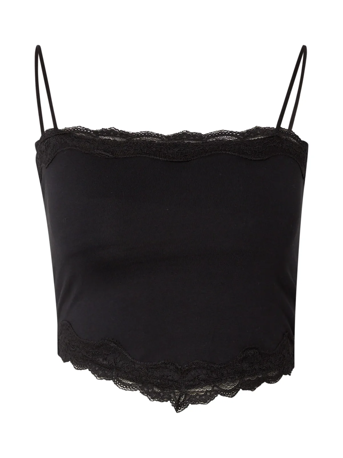 Design: Gevoerde zoom/rand, Zoom/rand met boord; Materiaal: Jersey; Halstype: Carréhals; Motief: Effen; Soort bandjes: Spaghettibandjes; Details: Kant; Extra's: Op staal naden, Voelt zacht aan; Pasvorm: Aansluitende pasvorm; Armlengte: Mouwloos; Lengte: Korte pasvorm