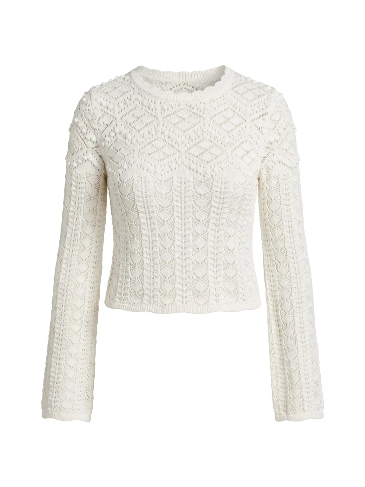 Design: Geribbelde kraag, Geribd ceintuurtje, Geschulpte zoom; Materiaal: Knitwear; Halstype: Ronde hals; Motief: Effen; Details: Mesh; Extra's: Patroon gebreid, Fully fashioned, Met textuur; Pasvorm: Slanke pasvorm; Armlengte: Lange mouw; Lengte: Normale lengte