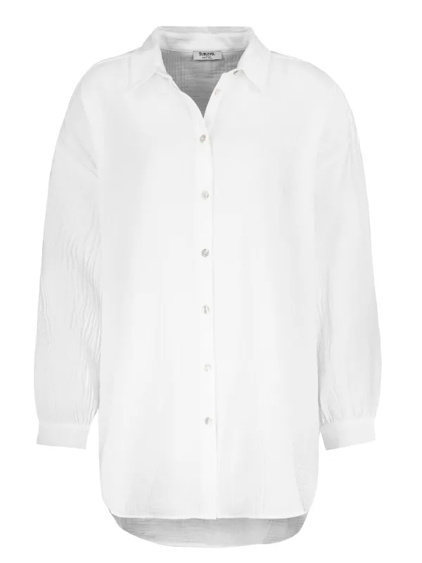 Blouse type: Klassieke blouse; Design: Knop sluiting; Type sluiting: Knoopsluiting; Materiaal: Mousseline; Motief: Geruit; Kraag: Kentkraag; Details: Plooien, Gedrapeerd; Pasvorm: Losse pasvorm; Armlengte: Lange mouw; Lengte: Lange pasvorm