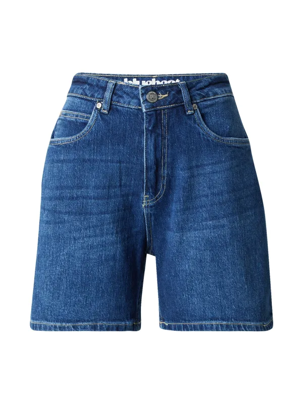 Design: Gevoerde zoom/rand, Ritssluiting, 5-pocket-style; Type sluiting: Ritssluiting; Materiaal: Denim; Motief: Effen; Extra's: Contrasterende naden, Stevige stof, Riemlussen; Wassing: Blauw denim; Lengte: Kort/mini; Pasvorm: Regular; Taillehoogte: High waist
