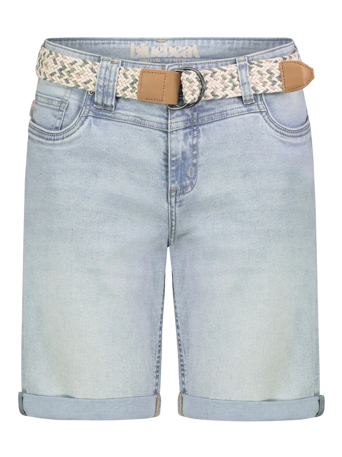 Design: Omgeslagen zoom, Ritssluiting, 5-pocket-style, Met riem; Type sluiting: Ritssluiting; Materiaal: Denim; Motief: Effen; Extra's: Gewassen effect, Vaste grip, Riemlussen; Wassing: Light washed; Lengte: Knielengte; Pasvorm: Regular; Taillehoogte: Mid waist