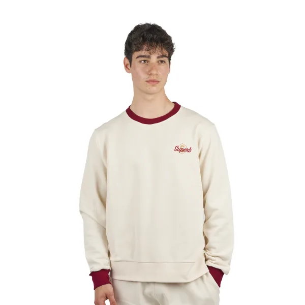 Basic sweatshirt Superb. Ronde hals. Merkopdruk op de voorkant. Geribde manchetten en tailleband. Naden in toon zichtbaar. Samenstelling: 96% Katoen, 4% Elastaan Onderhoud: - Wassen op max. 40ºC. - Geen bleekmiddel gebruiken. - Strijken op lage temperatuur. - Niet chemisch reinigen. - Geen droger gebruiken.