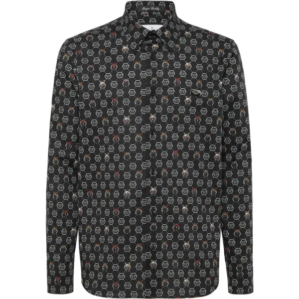Voeg een vleugje uniciteit toe aan je look met dit katoenen poplin overhemd en... Ontdek wat het uniek maakt. Katoenen popeline Monogram Fairy Gang-patroon geheel bedrukt Metalen badge met logo op linkerborst Knopen met logo Afgeronde zoom Pasvorm: Sugar Daddy