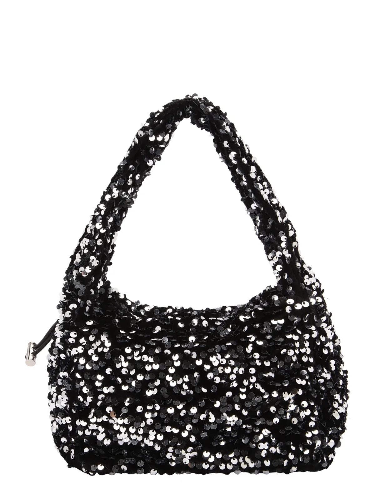 Design: Ruim hoofdvak, Vak voor mobiele telefoon; Type sluiting: Magnetische sluiting; Motief: Effen; Materiaal: Textiel; Extra's: Glitterend, Gestructureerd oppervlak; Maat: Klein; Hengsellengte: Korte schouderriemen