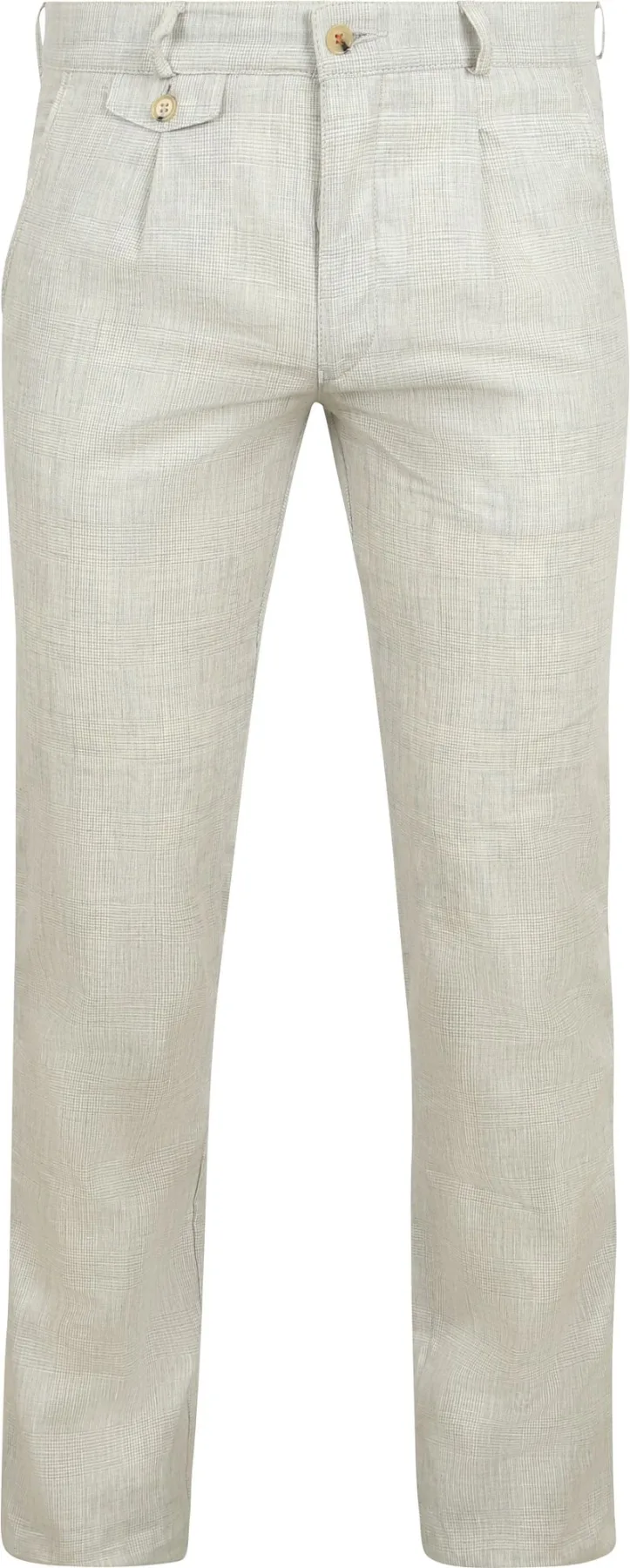 Suitable Chino Pico Pleat Cotton Linen Glencheck Lichtgrijs