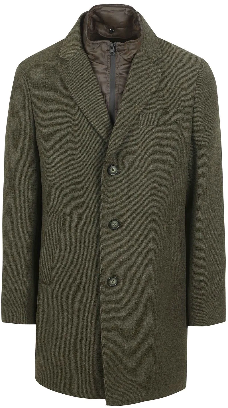 Suitable Coat Wol Twill Donkergroen