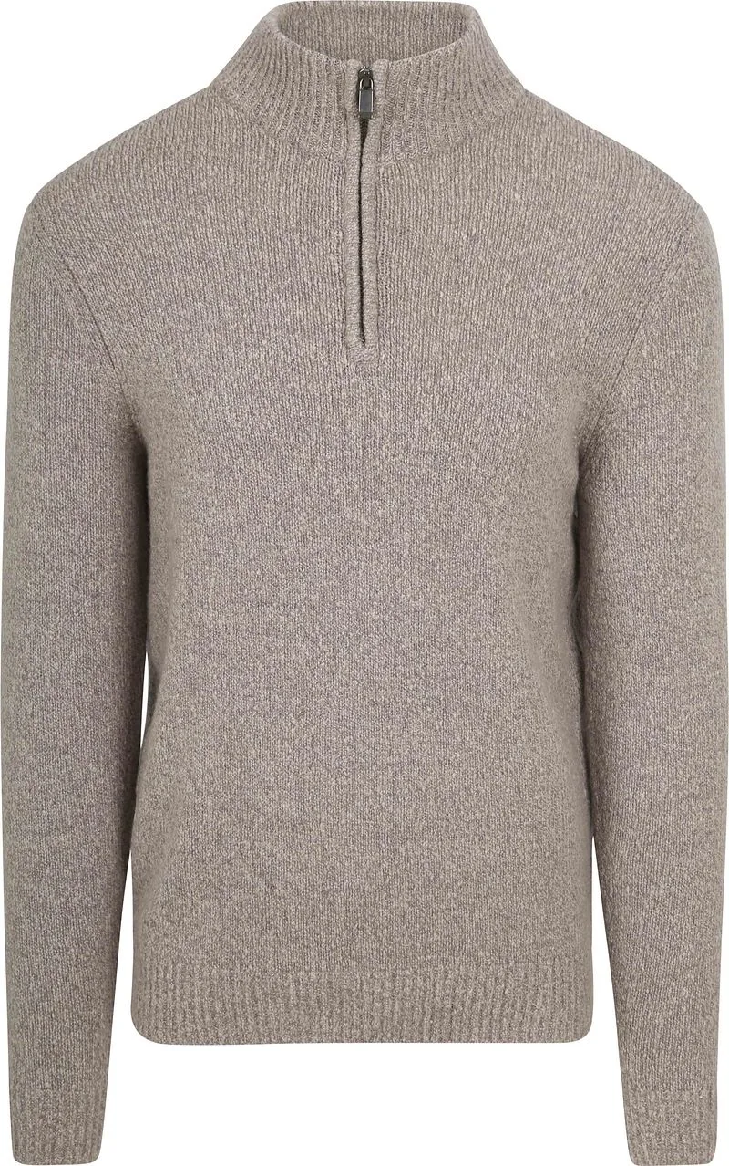 Suitable Half Zip Pullover Boiled Wool Taupe Prijzen