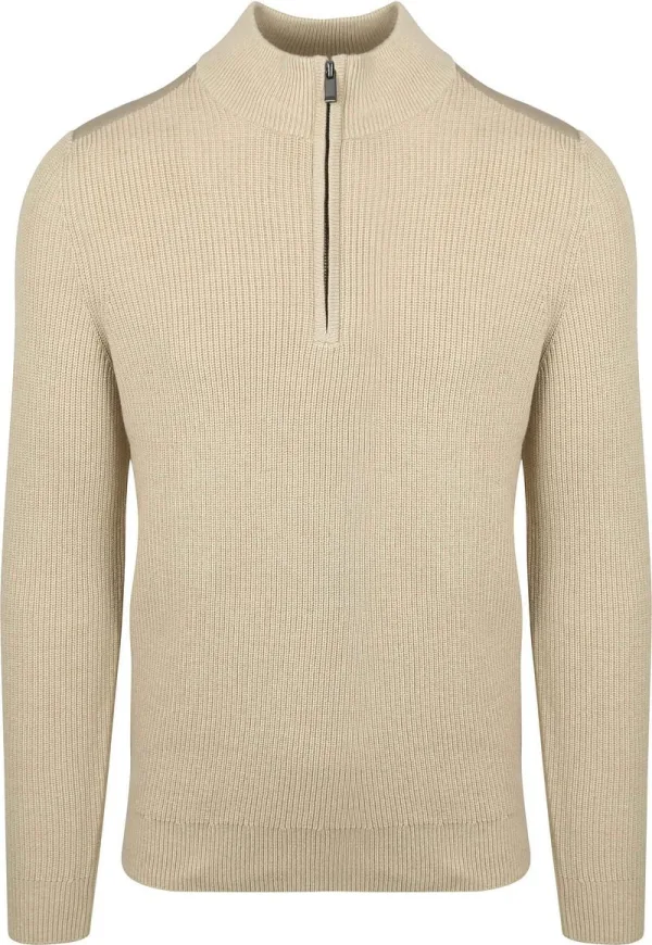 Suitable Half Zip Trui Patch Ecru Prijzen