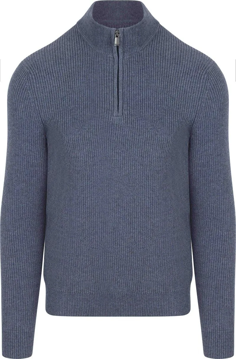 Suitable Half Zip Trui Wol Blend Donkerblauw