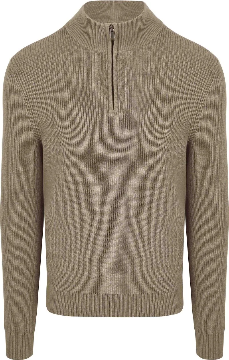 Suitable Half Zip Trui Wol Blend Taupe Prijzen