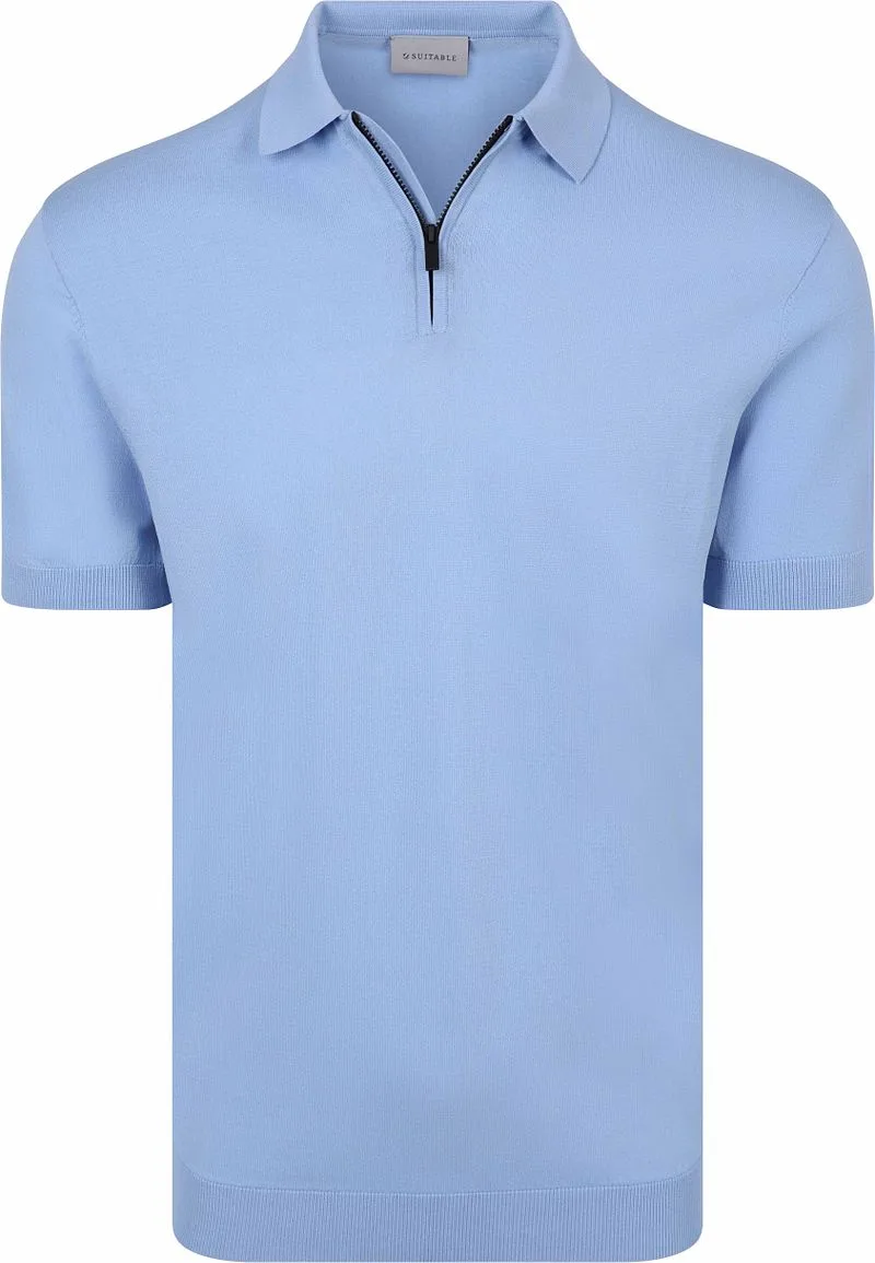 Suitable Knitted Half Zip Polo Dan Lichtblauw
