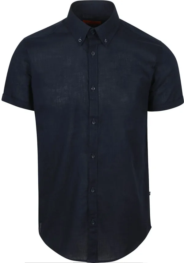 Suitable Korte Mouwen Overhemd Cotton Slub Navy Prijzen