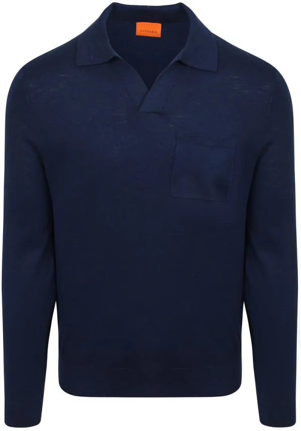 Suitable Longsleeve Knitted Poloshirt Riva Pocket Navy