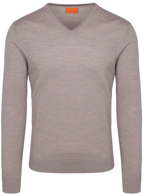 Suitable Merino Pullover V-Hals Greige Prijzen