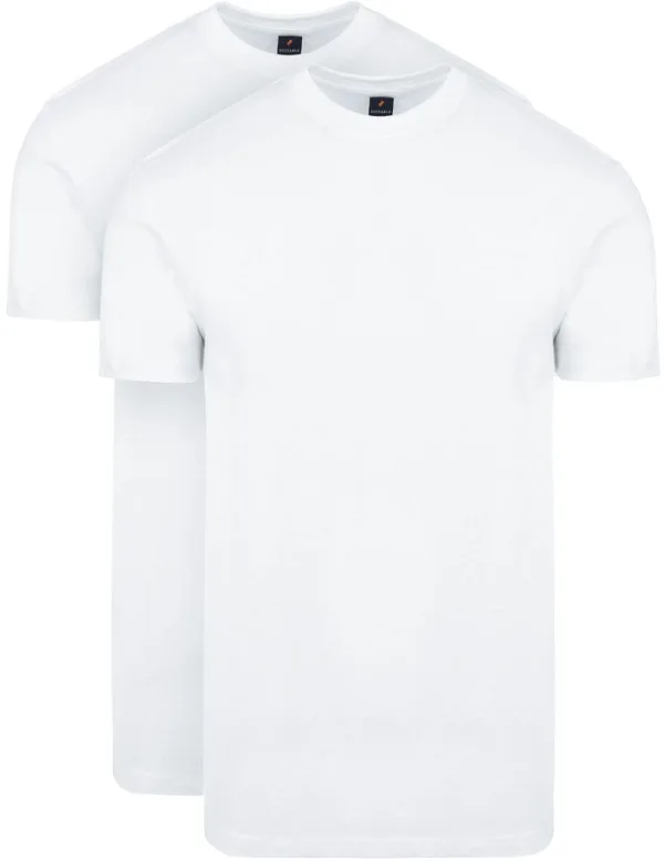 Suitable Obra T-Shirt Hoge Ronde Hals Wit 2-Pack Prijzen