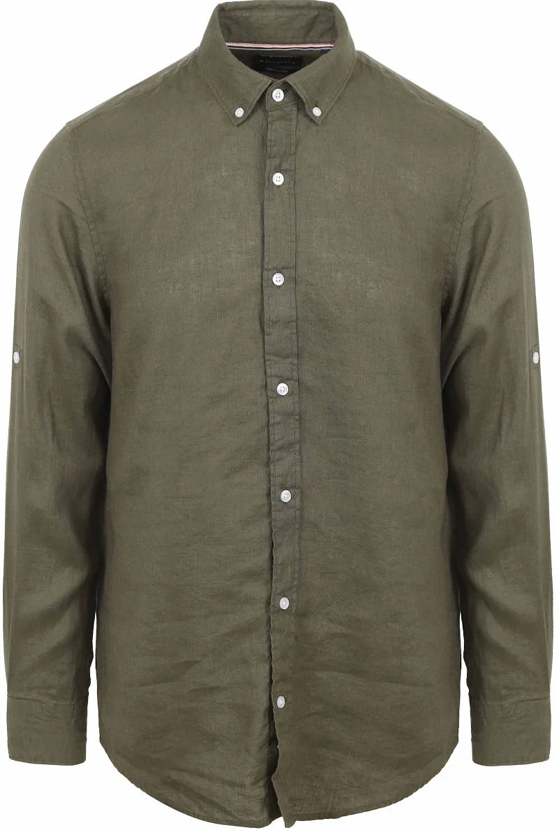 Suitable Overhemd Linnen Olijfgroen