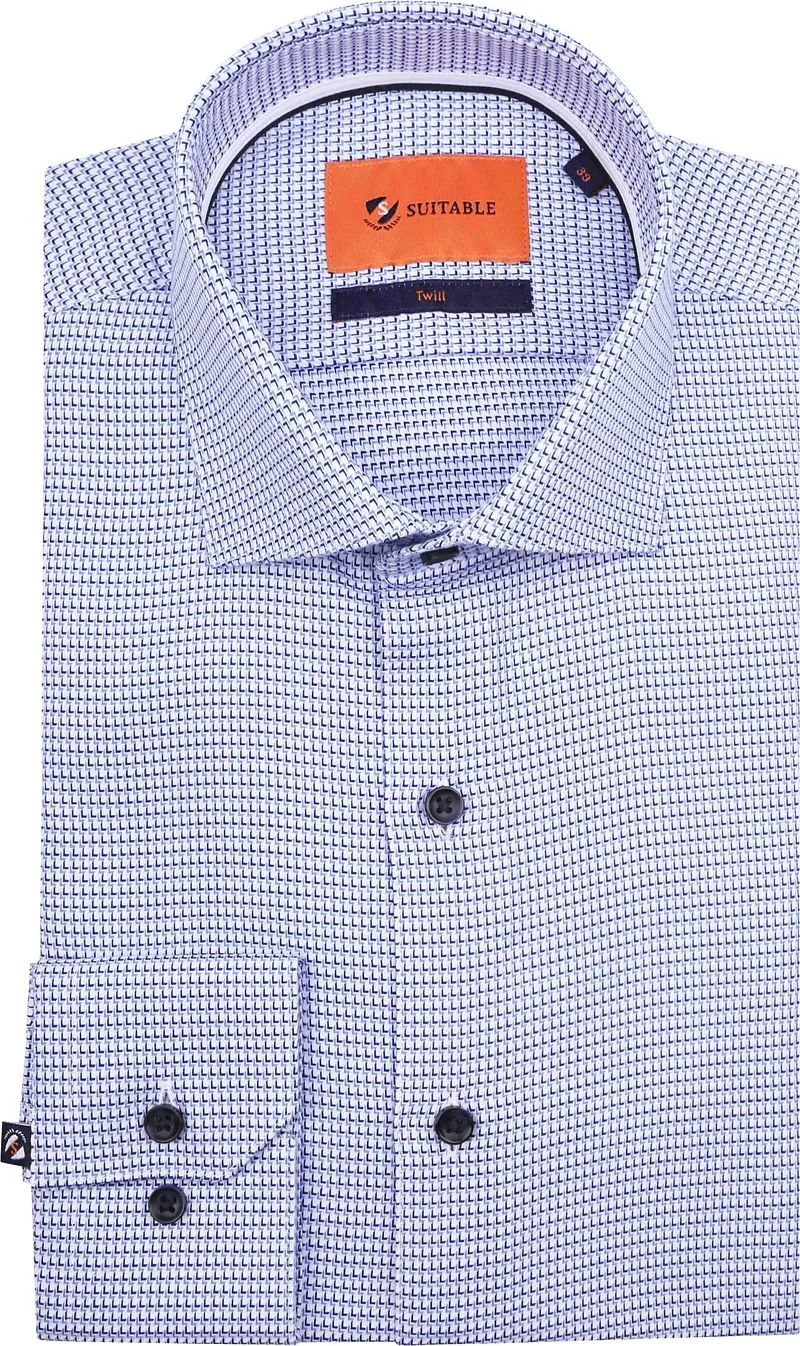 Op zoek naar hoge kwaliteit Heren Overhemden om je kledingkast mee op te vullen? Met deze Overhemd van Suitable heb je altijd een goed Overhemd in huis. De Suitable Overhemd Twill Print Blauw is heel geschikt!Suitable Overhemd Twill Print Blauw in de kleur Blauw met een pasvorm Slim-fit is gemaakt van Katoen met Enkel manchet met een Print dessin en Lange mouw