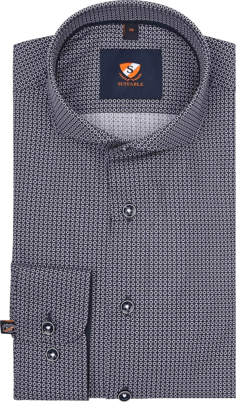 Suitable Overhemd Twill Print Donkerblauw (navy) - Maat 38 -...
