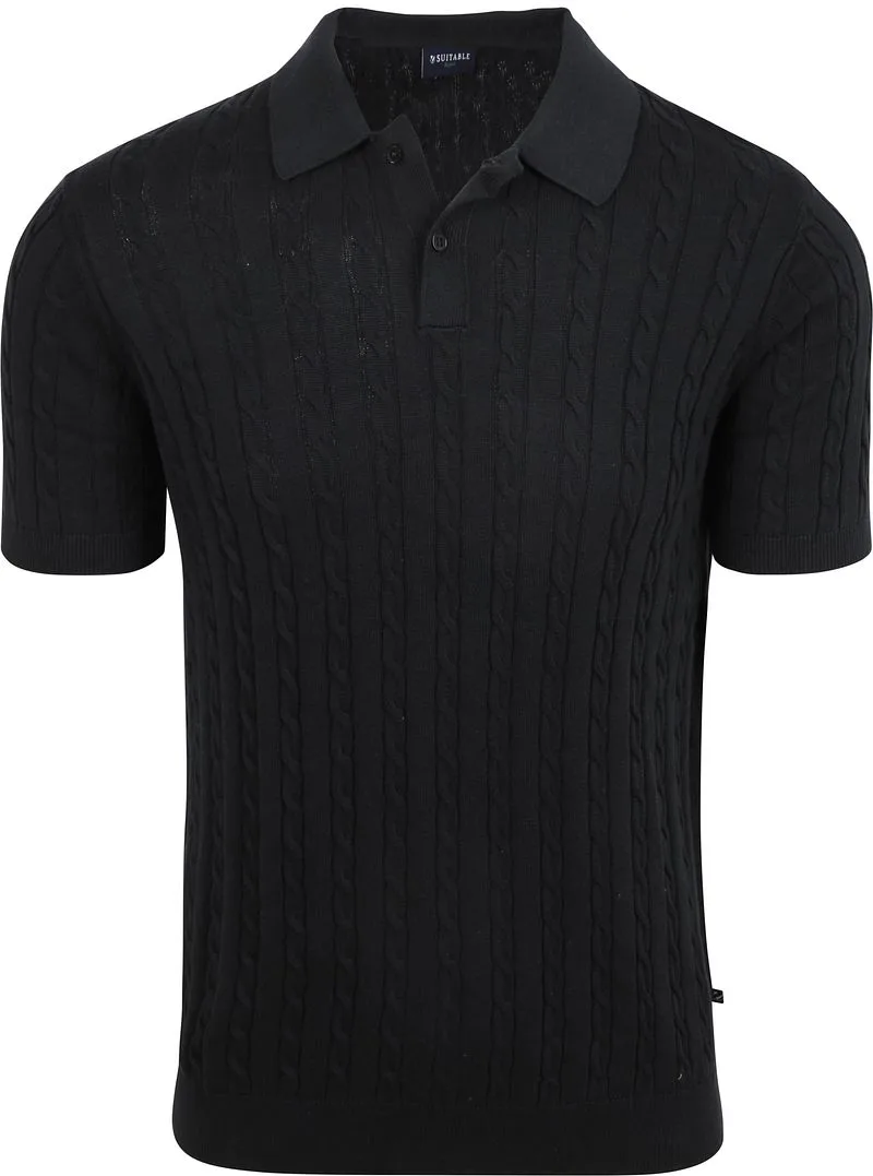 Suitable Respect Polo Knit Cable Navy