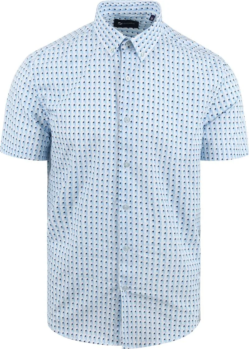 Suitable Short Sleeve Overhemd Print Blauw