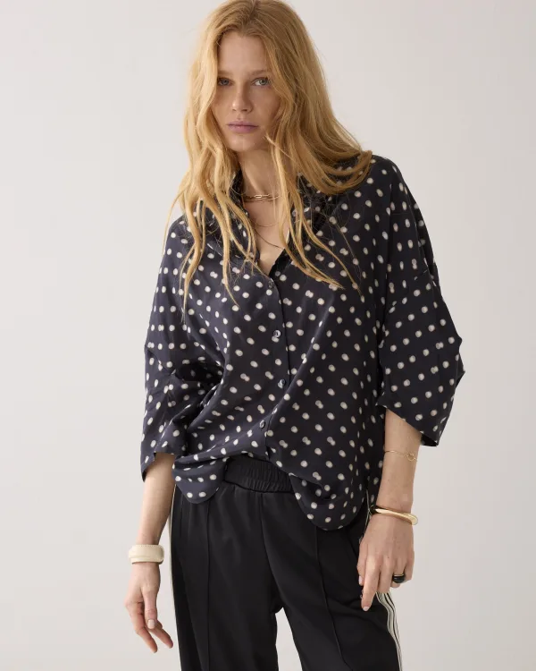 De Blouse Blury Dots van Summum is een stijlvolle damesblouse met korte mouwen en een speels stippenpatroon. De klassieke overhemdkraag geeft de blouse een tijdloze uitstraling, terwijl het luchtige ontwerp zorgt voor een comfortabele en casual look. Deze blouse is perfect om moeiteloos te combineren, zowel voor een alledaagse outfit als voor een meer geklede, modieuze stijl.