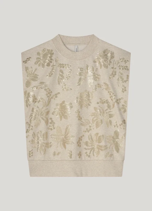 Summum Woman Sleeveless Embellished Sweatshirt Pebble Beige