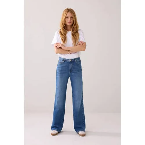 Deze Summum wide leg jeans in medium blue denim is een stevige basis voor allerlei outfits. De lange pijpen met wide leg pasvorm vallen recht en ruim langs het been, terwijl de hoge taille juist voor een aansluitende fit rondom je middel zorgt. De effen wassing zonder slijtagedetails maakt deze jeans geschikt voor zowel casual als iets nettere looks.Details die het verschil maken Wide leg model met lange pijpen voor een moderne, relaxte uitstraling Hoge taille die comfortabel aansluit en je middel duidelijk accentueert Vijfpocketstyling met riemlussen, geschikt voor een riem Gemaakt van 99% katoen en 1 procent elastaan voor een stevige stof met lichte stretch Rits- en knoopsluiting voor een klassieke jeansafwerking Effen medium blue kleur, goed te combineren met tops en blousesVan doordeweeks tot dinerDeze wide leg jeans past net zo goed bij een eenvoudig T-shirt en sneakers als bij een blouse en hakken. Voor een casual dag draag je er een losvallende trui op, voor een avond uit combineer je de hoge taille juist met een kortere top of ingestopte blouse, zodat de taille goed zichtbaar blijft.Sfeervolle stijl van SummumSummum staat voor vrouwelijke ontwerpen met een moderne, toegankelijke uitstraling. De collectie combineert comfortabele pasvormen met doordachte details, zodat je elke dag gemakkelijk gekleed de deur uit gaat. Met deze jeans kies je voor een model van een merk dat oog heeft voor stijl en dagelijks draaggemak.Een veelzijdige jeans die je het hele seizoen kunt dragen.