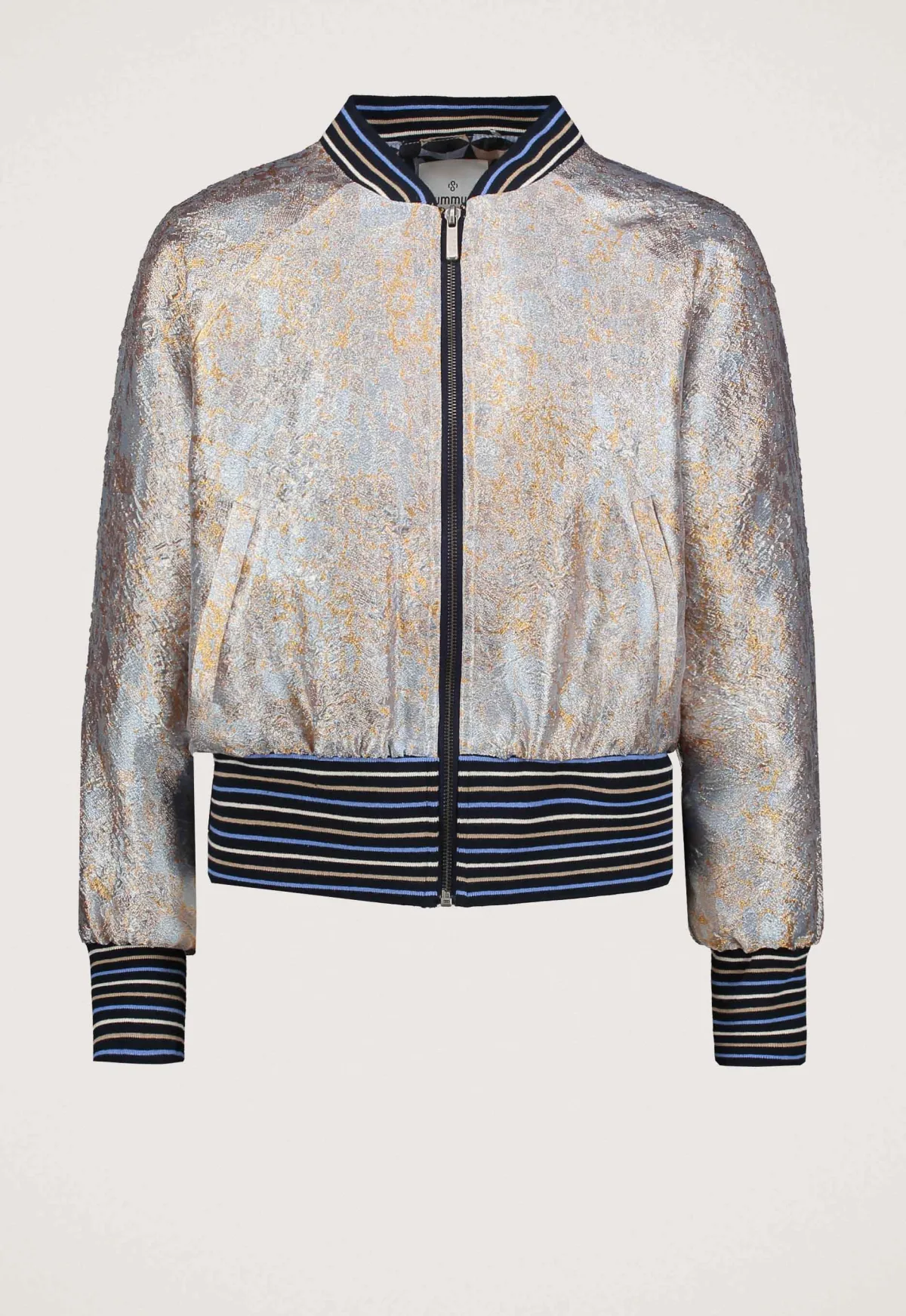 Dit is het 1S1295-12366C1 Jacquard Jack van het merk Summum. Dit jack heeft een regular pasvorm en is gemaakt van hoogwaardig polyester. Het jasje valt op door zijn raglanmouwen en brede gestreepte boord aan de onderkant en de manchetten, wat een speels effect geeft aan het geheel. Verder is het jack uitgerust met een ritssluiting en handige strookzakken.