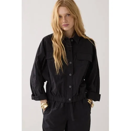 Deze zwarte cropped jas voor dames van Summum is een praktische toevoeging aan je garderobe voor het voorjaar. Het korte model valt in de taille en geeft een moderne, frisse uitstraling. Door de effen zwarte kleur combineer je het jasje makkelijk met jeans, een pantalon of een jurk. Gemaakt van 100% katoen voelt het materiaal stevig maar soepel aan, prettig voor wisselvallige lentedagen.Details van dit jasje Cropped lengte voor een moderne, vrouwelijke uitstraling Gemaakt van 100% katoen voor een ademende stof Klassieke kraag voor een rustige, verzorgde look Lange rechte mouwen die comfortabel rond de armen vallen Effen zwarte kleur die goed te combineren is met verschillende stijlen Borstzakken voor een casual accent en extra opbergruimte Geschikt voor het seizoen: lenteLaagje voor elke dagDit jasje draag je makkelijk over een T-shirt, blouse of dunne trui. De cropped lengte komt goed uit op een hoge taille jeans of een rok en is ook geschikt als extra laagje onderweg naar werk, een etentje of een dagje weg.Summum: aandacht voor pasvorm en detailSummum staat voor kleding met aandacht voor pasvorm, details en een eigentijdse uitstraling. De collecties sluiten aan op een moderne levensstijl, met items die je seizoen na seizoen kunt blijven dragen.Een zwart jasje dat je voorjaar eenvoudig netter en toch ontspannen aankleedt.