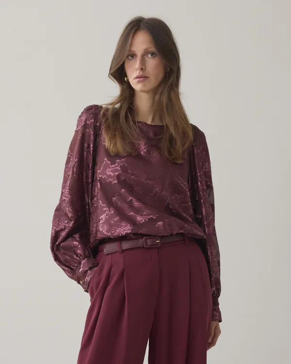 Summum Top Shiny Jacquard 2s3386-12340 Sweater 558 Merlot