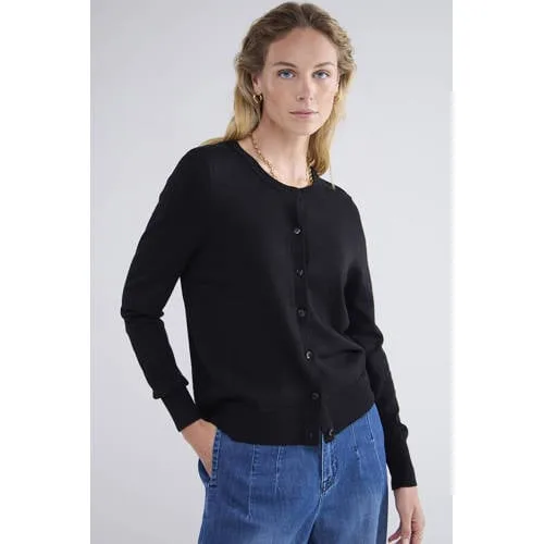 Dit fit vest voor dames van Summum is gemaakt van een viscosemix. Het model heeft een ronde hals en lange mouwen. Het vest heeft een knoopsluiting.