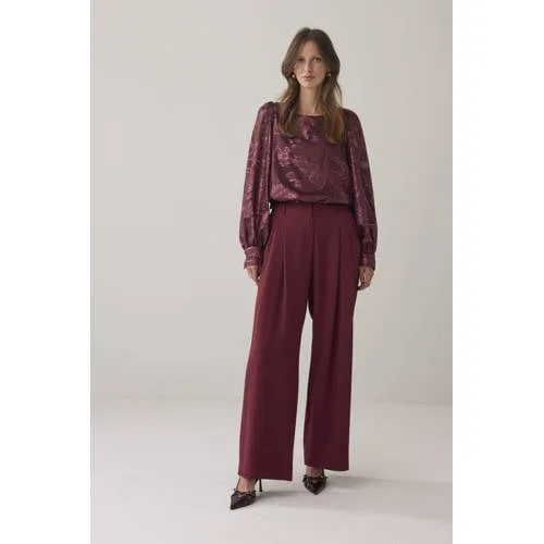 Summum wide leg regular waist broek donkerrood