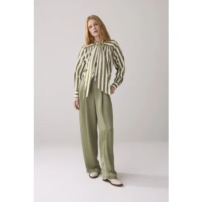 Summum Woman Blouse Bow Tie Printed Stripe Combat Green