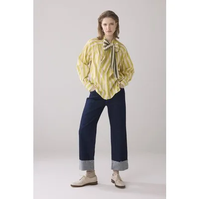 Summum Woman Blouse Bow Tie Printed Stripe Mimosa Yellow