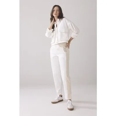 Summum Woman Denim Jacket Comfi Cotton Twill White Denim