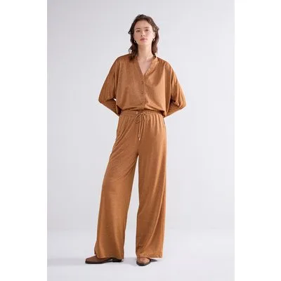 Summum Woman Flared Pants Fine Lurex Jersey Caramel Coffee