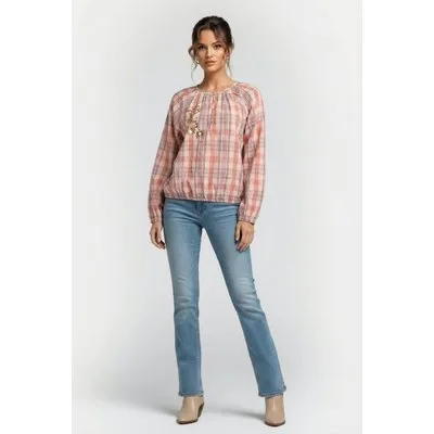 Summum Woman Longsleeve Top Pink Check Rose Smoke