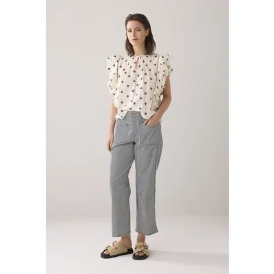 Summum Woman Top Blue Daze Embroidery White