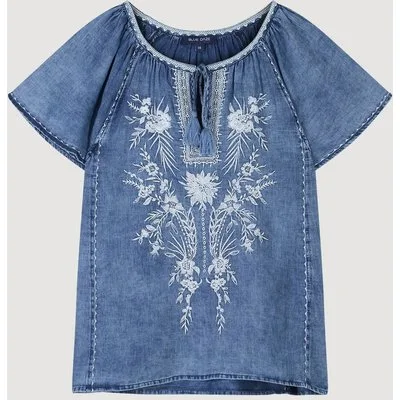 Summum Woman Top Indigo Embroidery Blue Daze Indigo