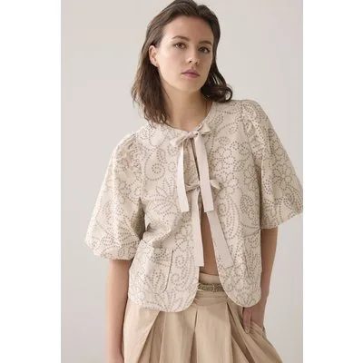 Summum Woman Top Laser Cut Dots Sesame
