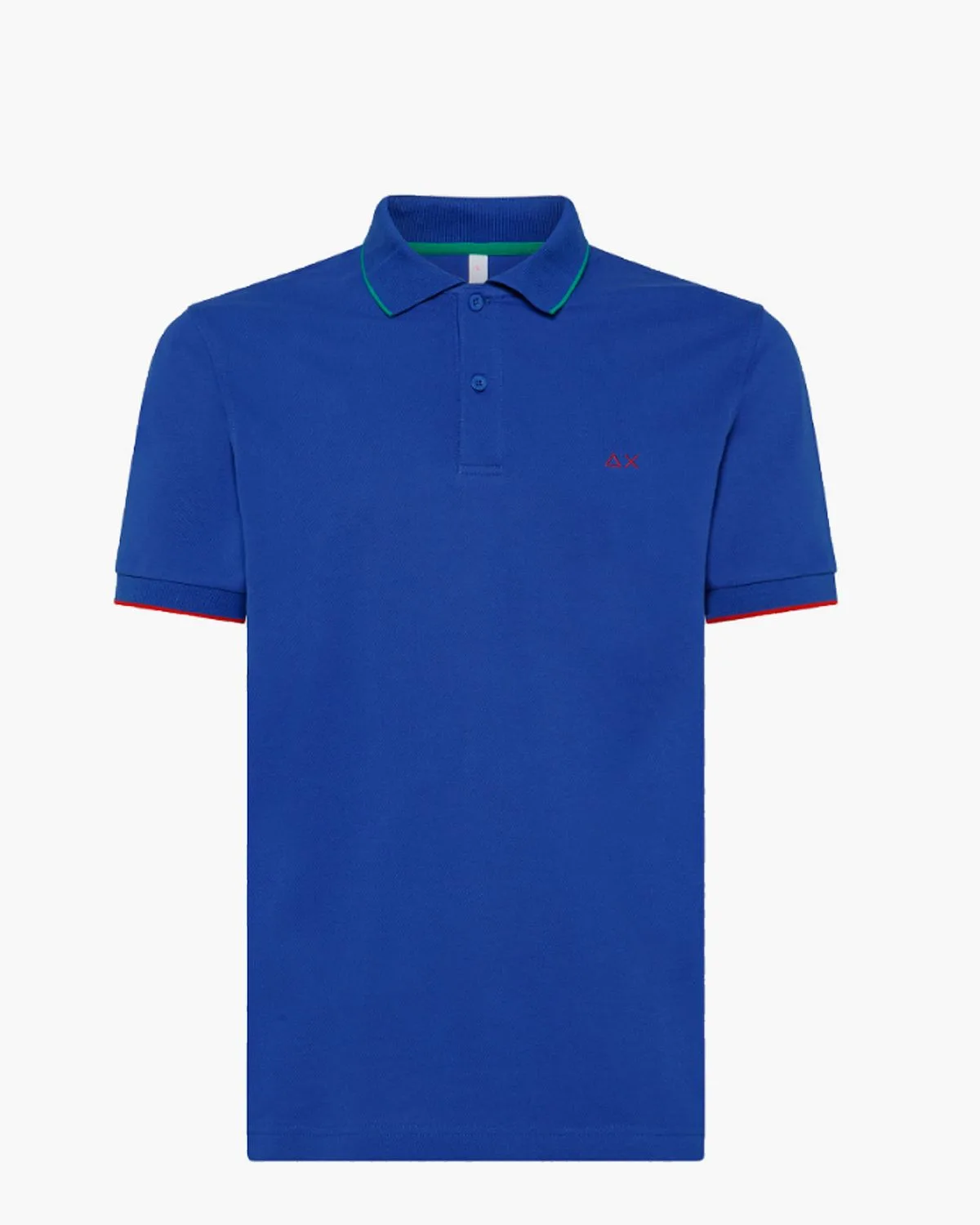 Poloshirt voor heren Polo Small Stripe A33111-58 uit de collectie van het Italiaanse label SUN68. Dit model in een kobaltblauwe tint met short sleeves is gemaakt van 95% katoen en 5% elastaan. Coole details zijn de groene afwerking bij de kraag en de rode stripes aan de mouwen. Kobalt knoopjes en rode geborduurde branding maken het shirt