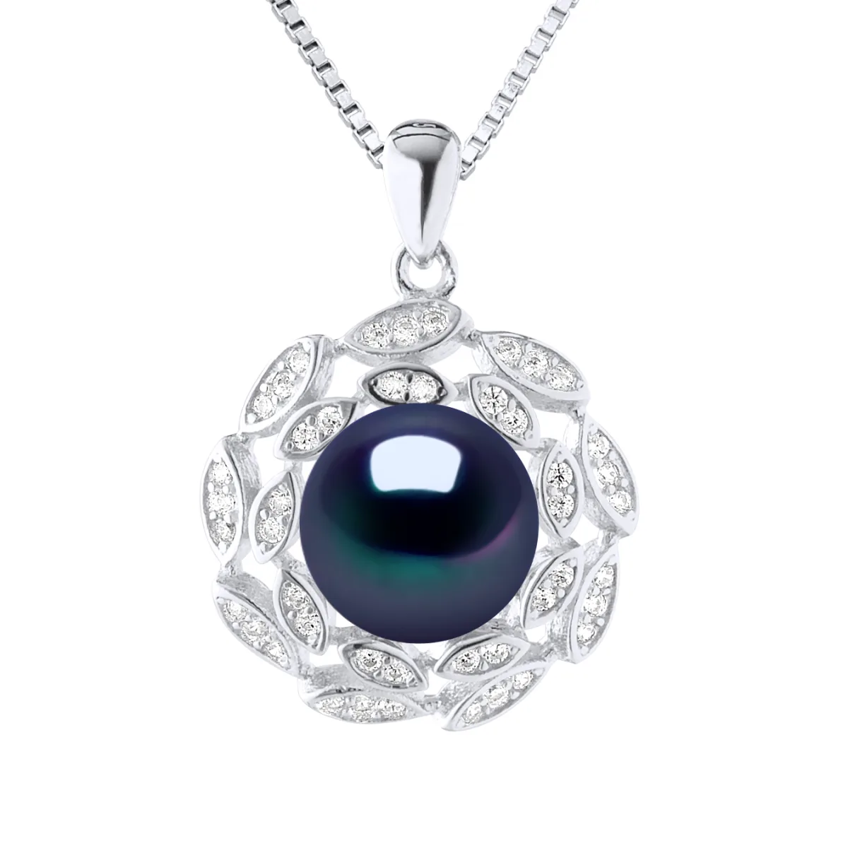 Ketting - Freshwater Pearl knop 9-10 mm - Paving oxides - Box Chain Rhodium 925 duizendste - Lengte: 42 cm - Wordt geleverd in een koffer met een certificaat van echtheid en een internationale garantie - Al onze sieraden zijn gemaakt in Frankrijk.