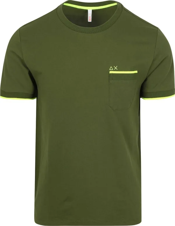 Sun68 Piqué T-Shirt Fluo Stripe Army Groen Prijzen