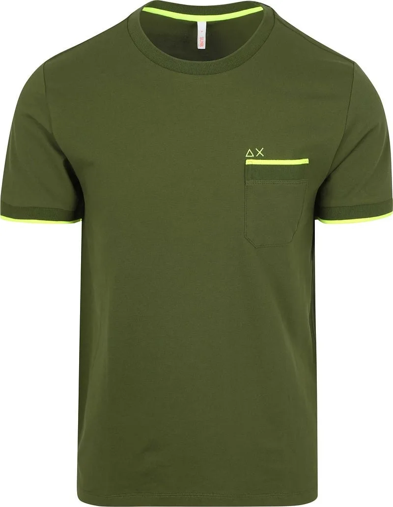 Sun68 Piqué T-Shirt Fluo Stripe Army Groen