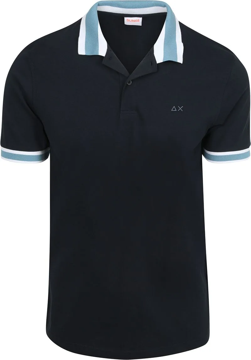 Sun68 Poloshirt Multistripes Collar Navy Prijzen