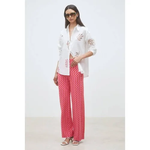 Deze luchtige katoenen dames blouse van Suncoo past goed bij je garderobe voor het nieuwe seizoen. Gemaakt van 100% katoen en afgewerkt met fijne broderie details, voelt deze blouse licht aan op de huid. De bladprint zorgt voor een rustig dessin dat goed combineert met je favoriete broeken en rokken.Verfijnde details voor elke dag Gemaakt van 100% katoen voor een ademend en zacht draaggevoel Broderie details geven de blouse een verfijnde uitstraling Bladprint in een rustig dessin, passend bij het lenteseizoen Lange rechte mouwen voor een ontspannen pasvorm Klassieke kraag en knoopsluiting aan de voorkant Zonder zakken voor een rustig silhouet Onderdeel van de Boutique collectie, in standaardmatenGeschikt voor lentedagenDeze blouse is passend voor lentedagen waarop je iets luchtigs wilt dragen dat toch verzorgd oogt. Het soepele katoen beweegt makkelijk met je mee en voelt de hele dag comfortabel.Suncoo met oog voor detailSuncoo ontwerpt moderne kleding met een doordachte afwerking. Tijdloze vormen en subtiele details staan centraal, waardoor je de kleding vaak kunt dragen in verschillende situaties.Een bovenstuk dat je eenvoudig aantrekt op drukke dagen en dat altijd verzorgd uitziet.
