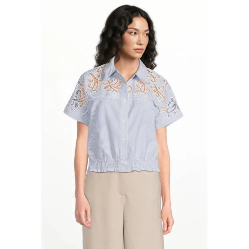 Suncoo blouse met krijtstreep broderie lichtblauw Prijzen