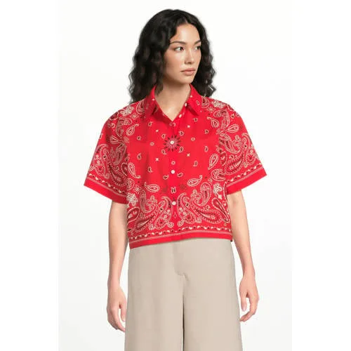 Deze Suncoo dames blouse brengt kleur in je garderobe met een rood/witte paisleyprint. De blouse heeft een klassieke kraag en korte mouwen, waardoor hij luchtig is en geschikt voor het voorjaar en warmere dagen. Het klassieke model met rechte mouwen maakt het een item dat je zowel casual als meer gekleed kunt dragen.Details die opvallen Rood/witte paisleyprint voor een opvallend en verzorgd geheel Korte mouwen, ideaal voor het lente seizoen of onder een vest Klassieke kraag voor een nette uitstraling Knoopsluiting over de hele lengte, praktisch om aan en uit te trekken Rechte mouwen voor een ontspannen pasvorm rond de armen Zonder zakken voor een rustige, gladde voorkant Onderdeel van de Boutique collectie, met aandacht voor detail en afwerkingVeelzijdig te stylen in het dagelijks levenDeze blouse past gemakkelijk in je dagelijkse outfits. Combineer met een lichte jeans voor een ontspannen dag of met een nette broek voor een werkdag. Door de rood/witte kleur laat hij zich goed combineren met neutrale tinten zoals beige, wit of denim.Suncoo: moderne stijl met Franse touchSuncoo staat voor eigentijdse ontwerpen met een vrouwelijke uitstraling. Het merk combineert herkenbare prints met draagbare modellen, zodat je kledingkast gevuld is met items die je vaak kunt dragen.Een blouse die je garderobe meer kleur geeft.