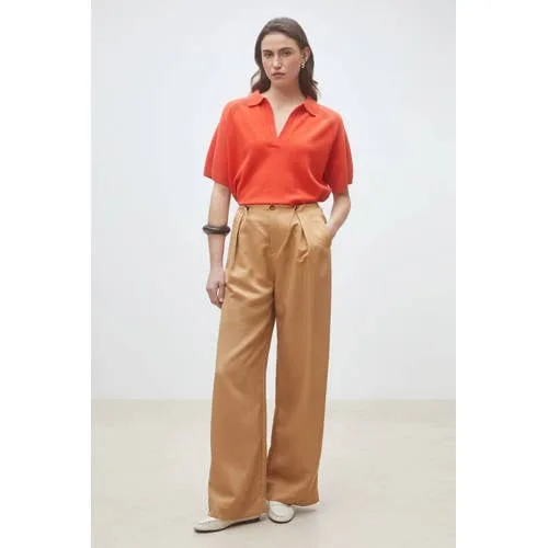 Deze rode wollen dames top van Suncoo is een stijlvolle basis voor dagen waarop je er verzorgd uit wilt zien zonder moeite. De top heeft korte, rechte mouwen en een klassieke kraag, wat direct een nette en toch ontspannen uitstraling geeft. Dankzij het effen design in een diepe roodtint is dit een item dat opvalt door zijn eenvoud en kleur, niet door opvallende details.Kenmerken van deze rode wollen top Gemaakt van 100% wol, wat zacht aanvoelt en prettig draagt in het voorjaar Korte mouwen met rechte mouwinzet voor een rustige, moderne look Klassieke kraag voor een licht geklede uitstraling Effen rood, eenvoudig te combineren met denim, zwart of neutrale tinten Onderdeel van de Boutique collectie, met aandacht voor detail en afwerking Geschikt voor standaardmaten, speciaal ontworpen voor damesVeelzijdig te dragen in het voorjaarIn het voorjaar draag je deze top solo op een jeans of pantalon. Op koelere dagen combineer je de wol met een lange rok en een dun jasje. De klassieke kraag maakt het ook een goede optie voor een nette werkdag of etentje, zonder dat het formeel wordt.Suncoo als moderne stijlgidsSuncoo staat bekend om eigentijdse collecties met een vrouwelijke en doordachte uitstraling. De Boutique lijn sluit daarbij aan met items die net even meer aandacht hebben gekregen in snit, materiaal en kleurgebruik. Zo haal je met deze top een betrouwbaar, stijlvol kledingstuk in huis dat mooi aansluit bij een moderne garderobe.Een rustige, rode woltop die je garderobe een tijdloze en draagbare update geeft.