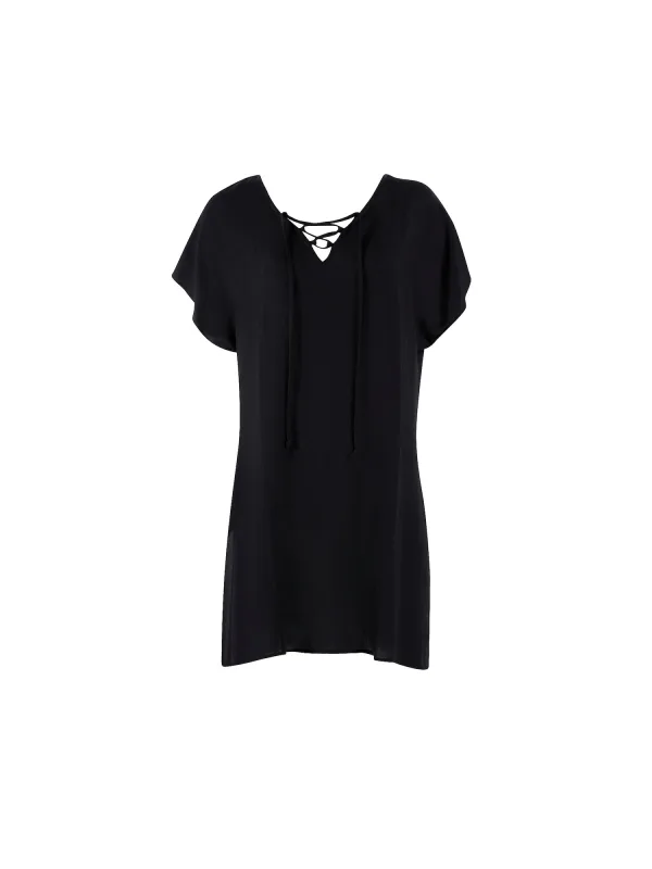 Design: Gevoerde zoom/rand, Zijdelingse inkepingen, Diepe snit/decolleté, Om te knopen/binden; Materiaal: Viscose; Halstype: V-hals; Motief: Effen; Extra's: Op staal naden, Gladde stof; Lengte: Kort/mini; Snit: Recht; Pasvorm: Losse pasvorm; Armlengte: Kwartmouw